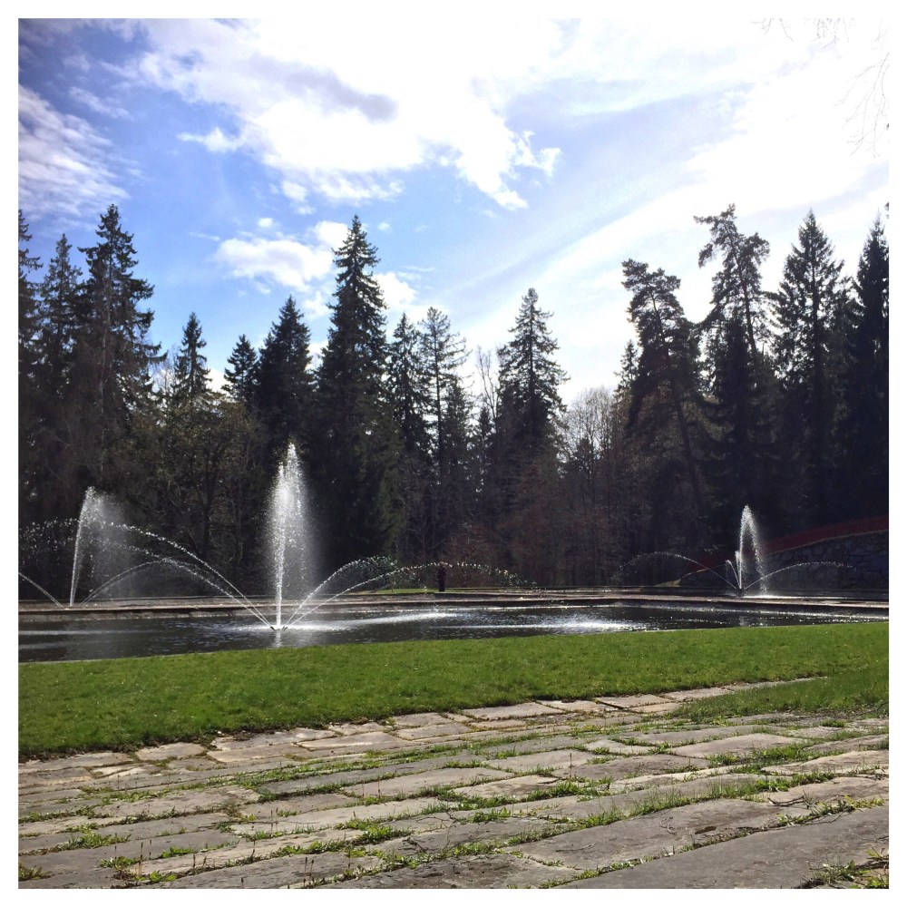 Det tog oss ungefär 1,5 timme att gå de dryga 6 kilometrarna, och vi satt sedan vid fontänerna i närmare en timme och njöt i vårsolen.