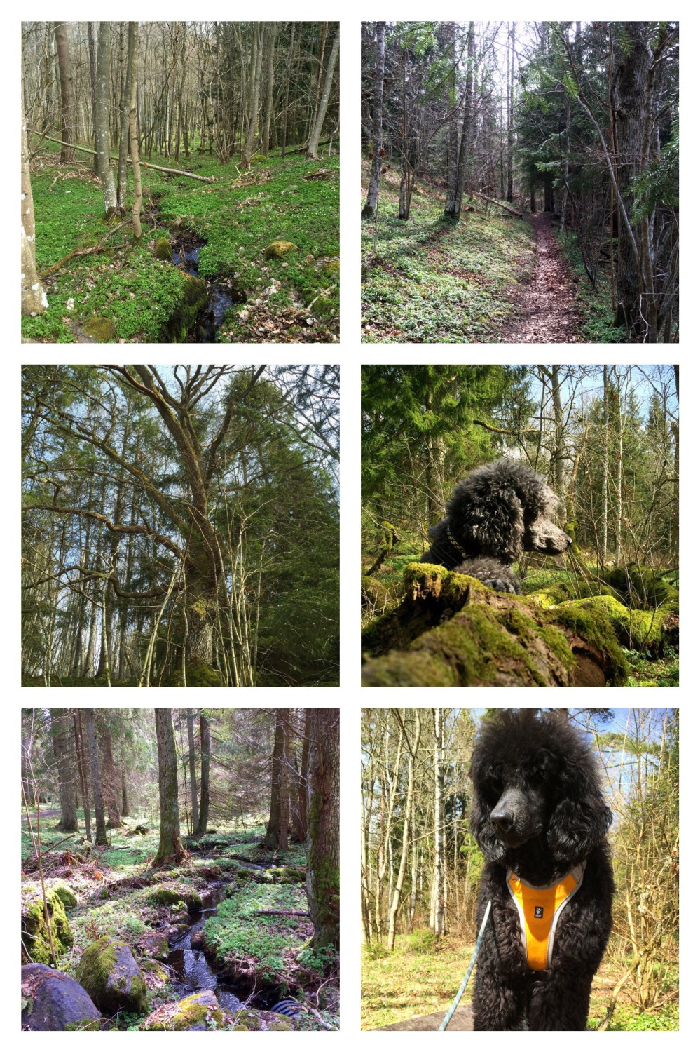 Sedan är det lätt att gå. Stigen är bred och de stigar som man kan ta av på är mycket mindre, så det är lätt att se vart man ska gå. Det var fullt av vitsippor hela slingan runt, och vi passerade många gamla majestätiska träd och små porlande bäckar. Det var rikt med fågelliv i skogen, och vi såg även en liten ekorre som tjattrade en hel del när den fick syn på oss.