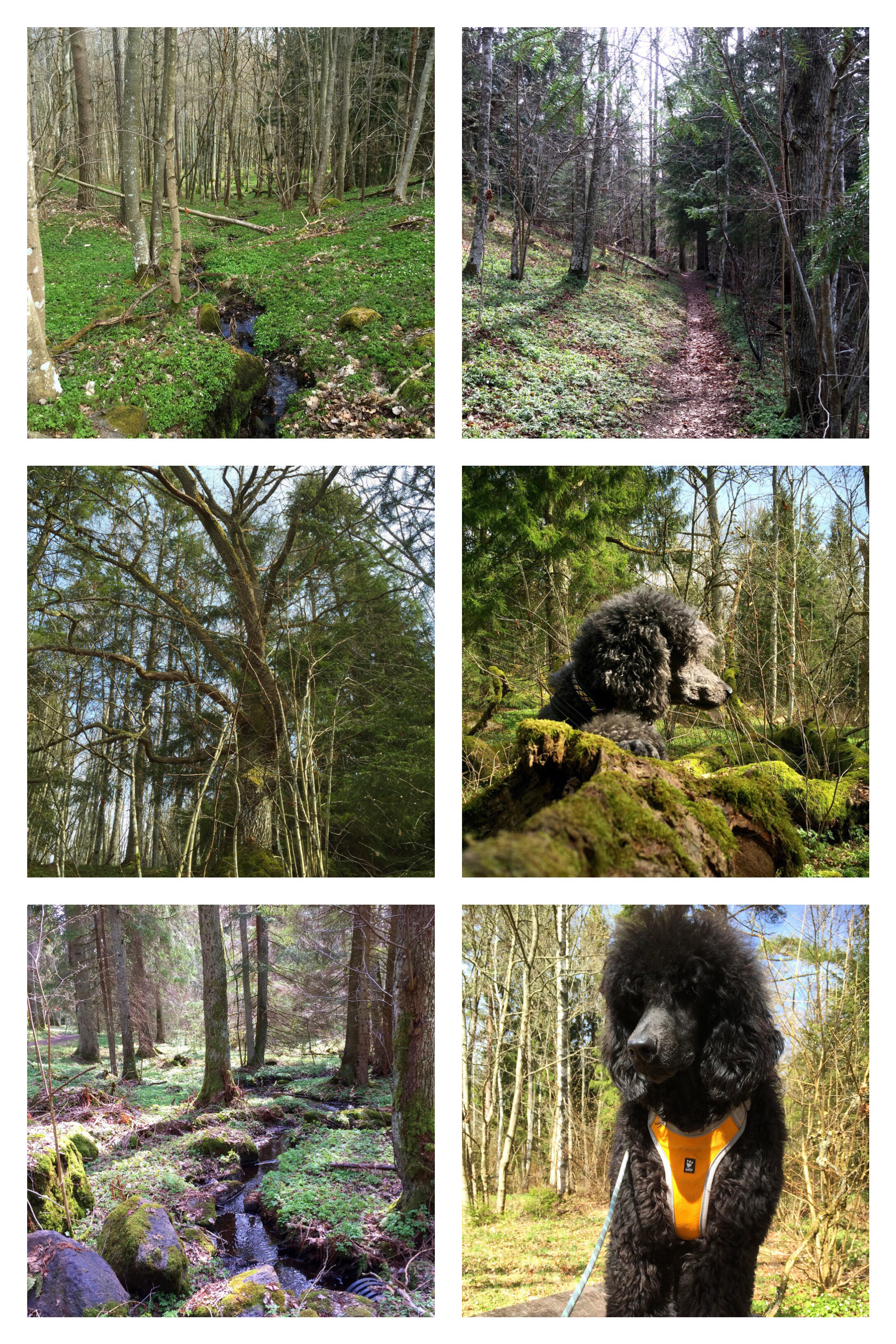 Sedan är det lätt att gå. Stigen är bred och de stigar som man kan ta av på är mycket mindre, så det är lätt att se vart man ska gå. Det var fullt av vitsippor hela slingan runt, och vi passerade många gamla majestätiska träd och små porlande bäckar. Det var rikt med fågelliv i skogen, och vi såg även en liten ekorre som tjattrade en hel del när den fick syn på oss.