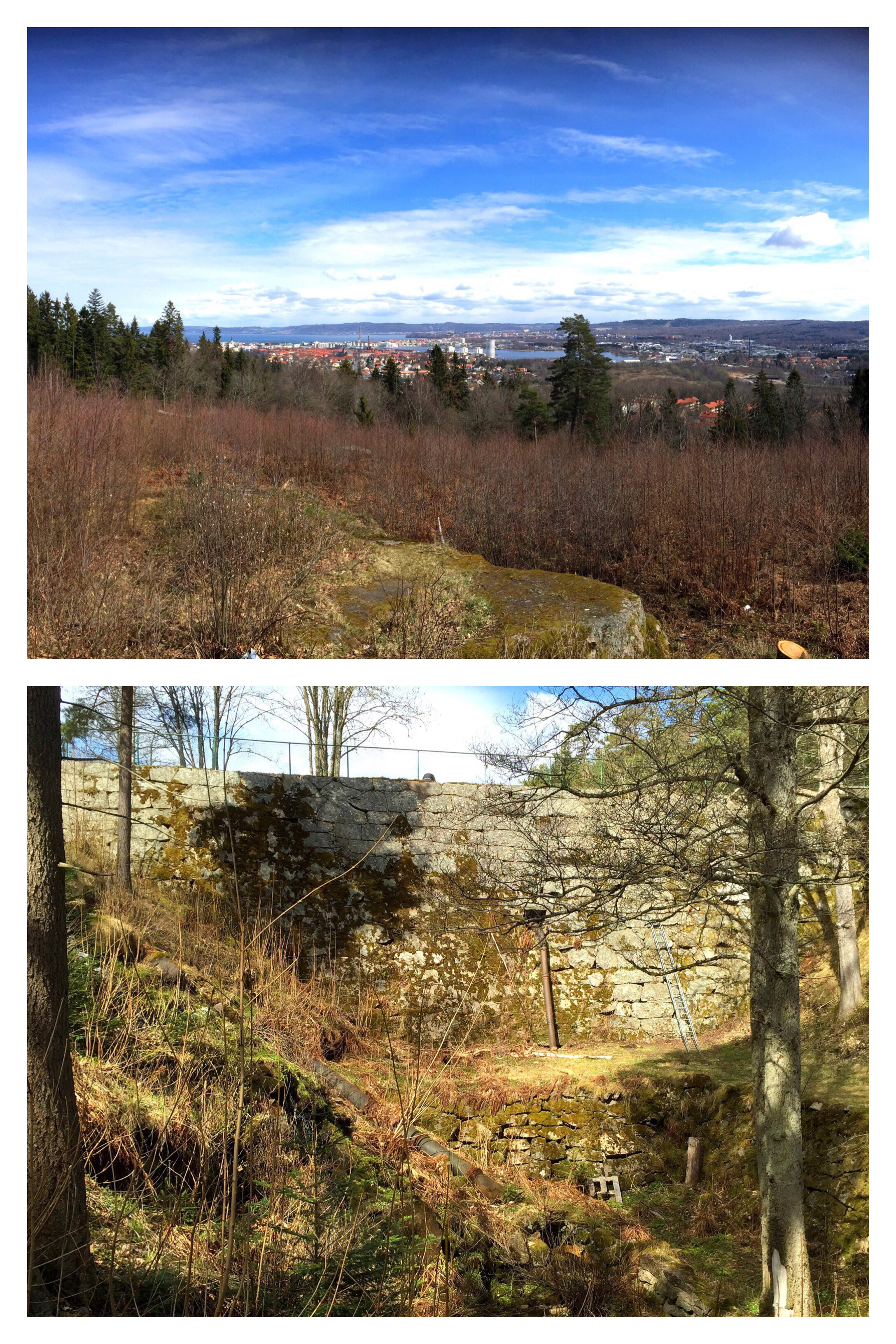 Men till slut kom vi fram till Odensbergs idrottsområde, och går man över gräsplanerna mot klipporna får man njuta av en storslagen utsikt över Jönköping. Sedan är det bara att följa bilvägen nedåt så kommer man tillbaka till parkeringen. På vägen passerar man en hög mur som fördämmer Åsendammen. Den är ganska mäktig att skåda.