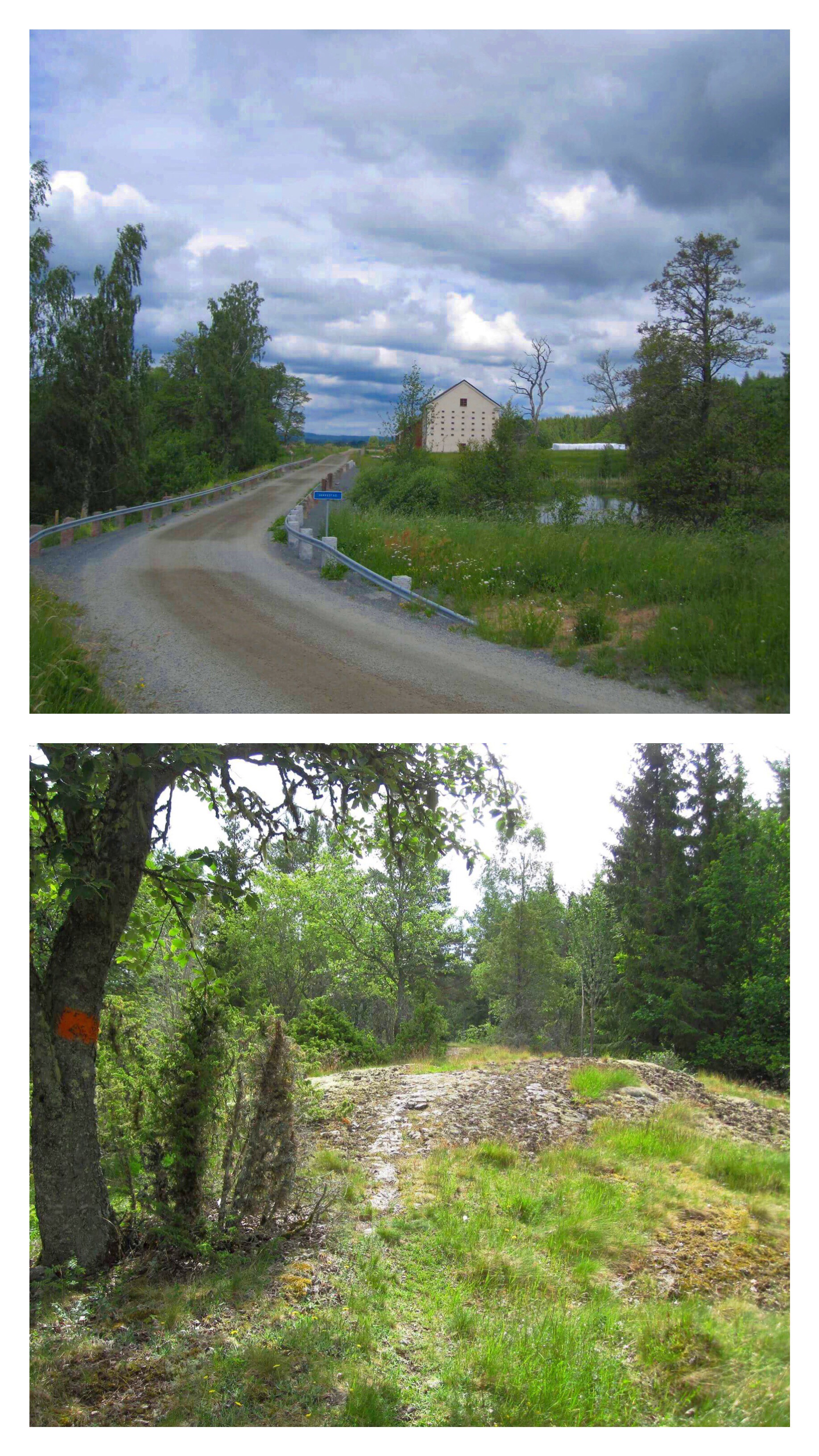 Denna växelverkan mellan vägar och stigar fortsatte, men till slut gick vi kanten av en åker för att sedan följa en gammal väg som ledde fram till en bondgård. Vi gick förbi bondgården och passerade flera hagar med kor och gamla stenrös. Mer svensk lantlig idyll kunde det inte bli.