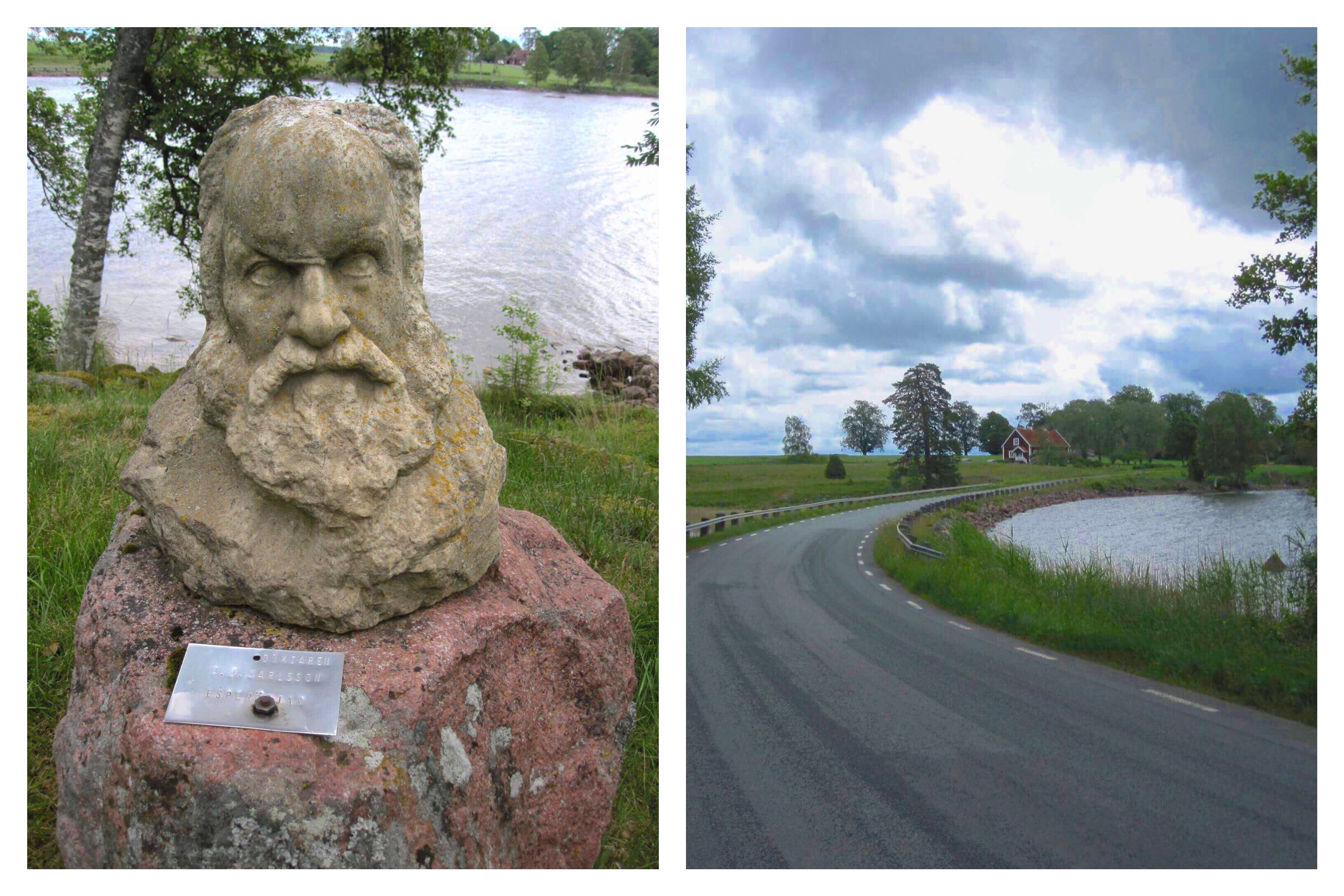 In the forenoon I had packed everything up and we set off. We followed the paved road back from where we came the day before and took the time to explore an old soldier’s cottage which we had jut walked by the day before. There we saw he statue of the poet A.J. Carlsson. The road continues along Assjön and pass several beautiful houses.