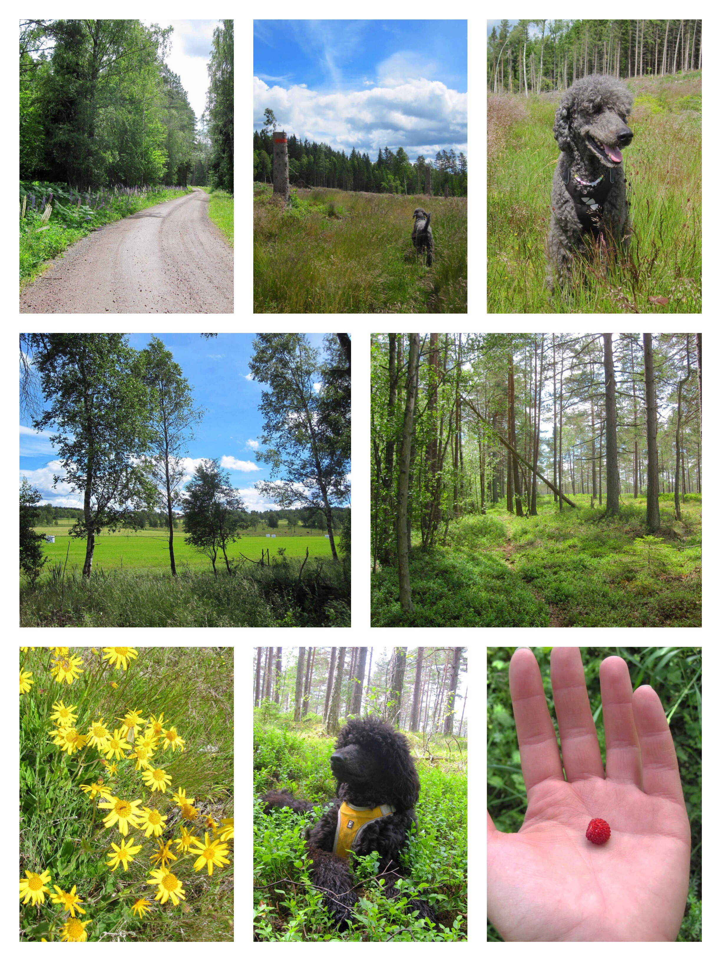 The trail passes through where I grew up, but despite that I have never explored it. Bur during this visit to Småland I needed to change that. In the forenoon on Midsummer’s Eve Oliver, Charlie, Chiko and I set off from Marbäck. My father drove us, but you can start from the village Aneby to which you can travel by train and bus, or someplace else along the trail.