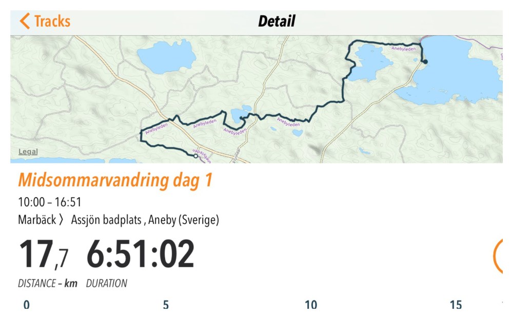 Aneby trail is in total 85 kilometers long, and we hiked 30 kilometres. The miles we walked were not so much a hike through the forest but more of a hike on he countryside, even if some paths did take us through the woods.