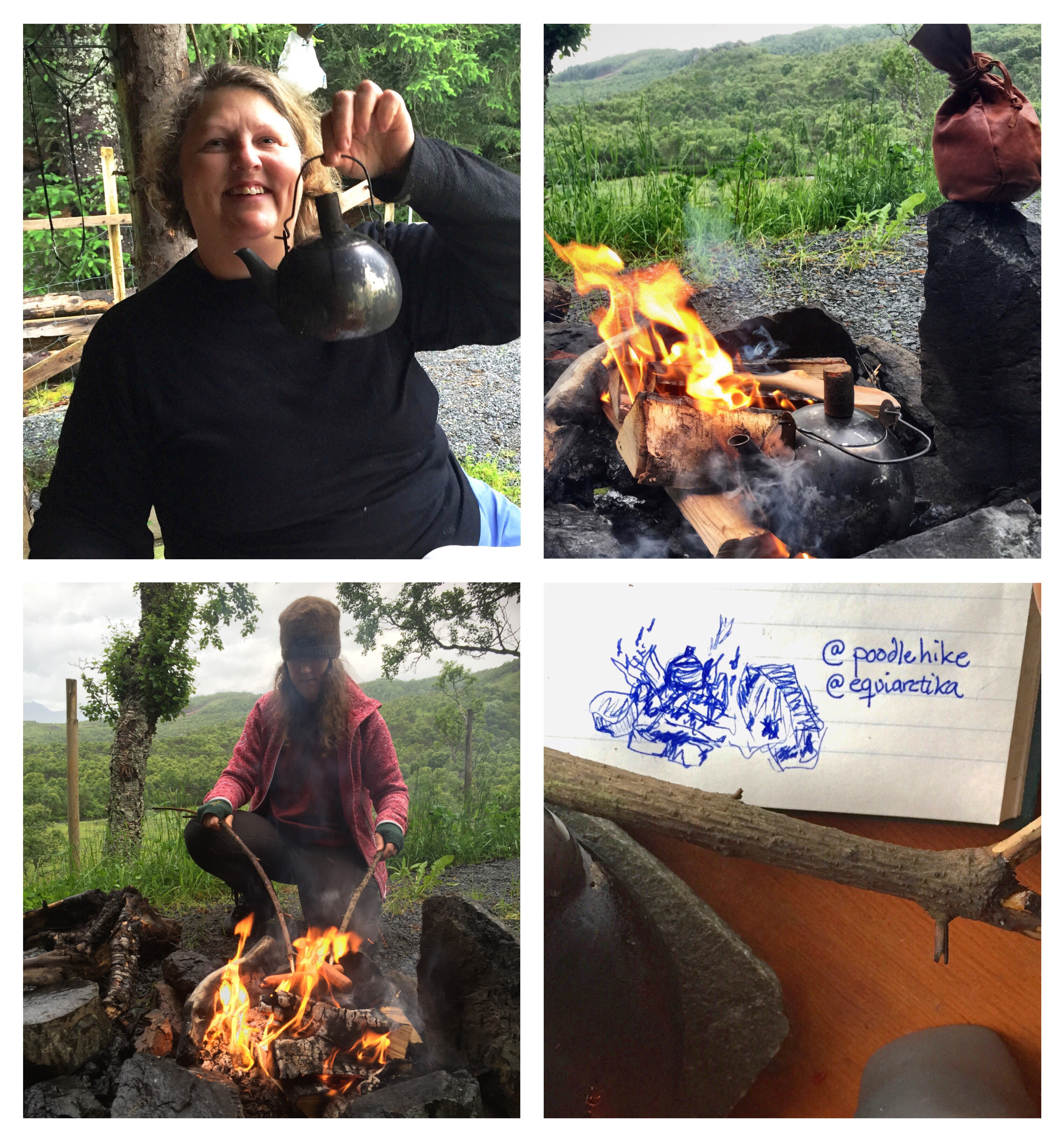 Ulrika gjorde upp elden medan jag gick iväg och täljde oss grillpinnar. Därefter grillade vi vegetarisk korv, och njöt av stillheten. Bäcken som porlade, vinden som drog genom träden, fjällen runt omkring oss och lukten av röken från brasan. Det behöver inte alltid vara mer komplicerat eller omständigt än så.