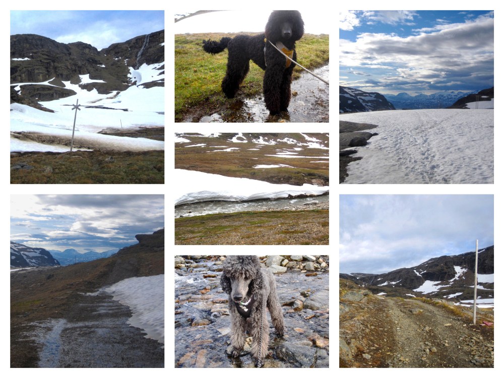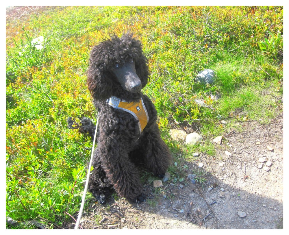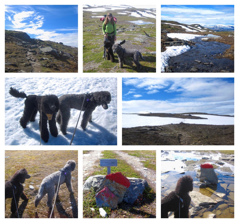 On our way to the starting point we walked past the golf course, and there we were stopped by a man. He asked if the dogs and I really were going to walk in the mountains, and if that really was something poodles can handle. I must admit I was a bit taken aback by his question, but I eventually said something about poodles being able to hike in the mountains.