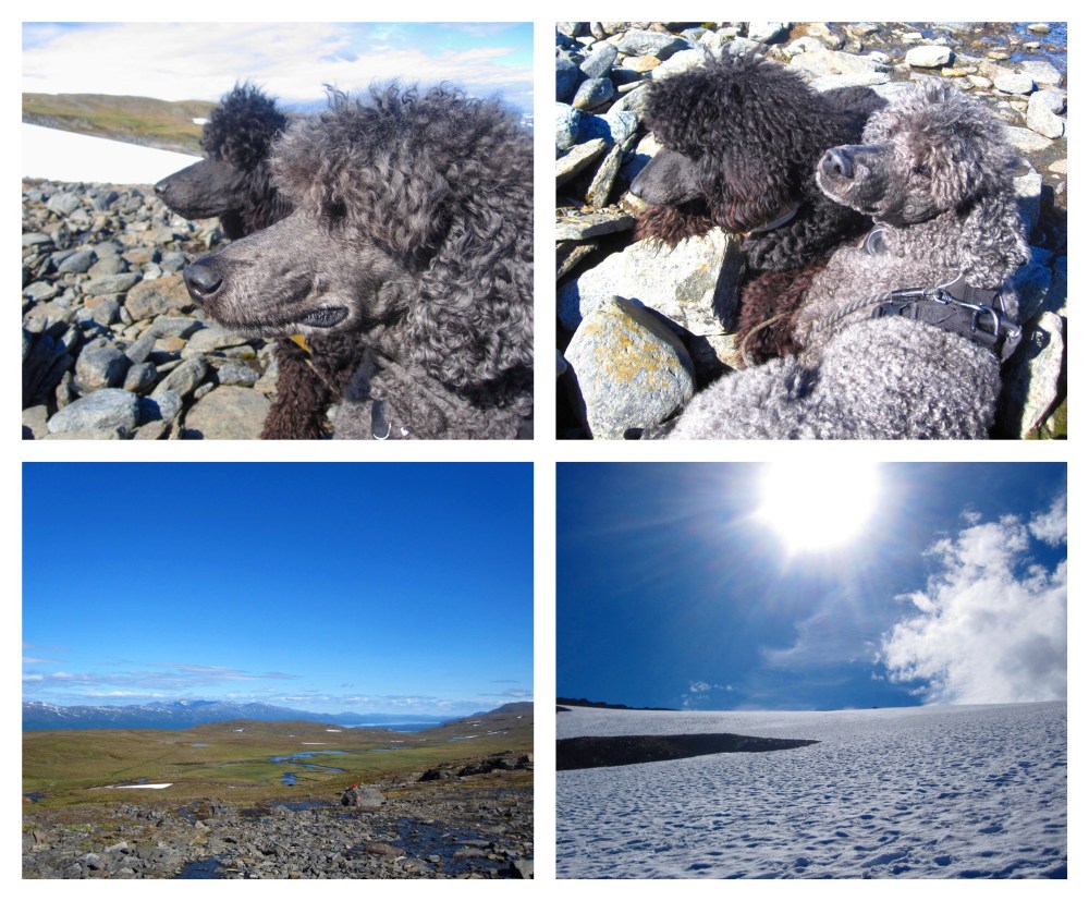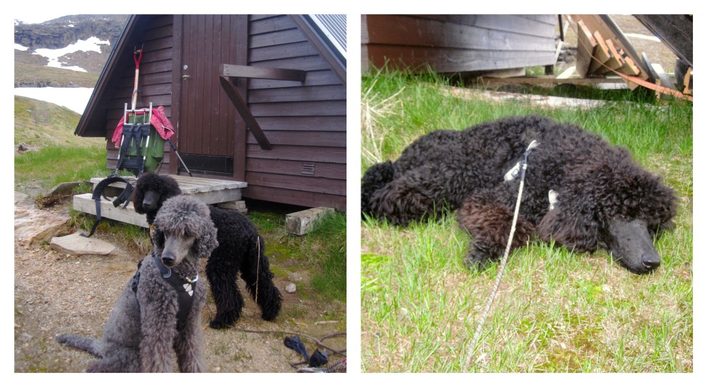 På vägen upp till ledens utgångspunkt passerade vi golfbanan, och där blev vi stoppade av en man. Han undrade om jag och hundarna verkligen skulle upp och gå på fjället, och om det är någonting som pudlar verkligen klarar av. Jag måste erkänna att jag blev lite ställd av denna fråga, men svarade till slut något om att pudlar visst kan gå i fjällen.