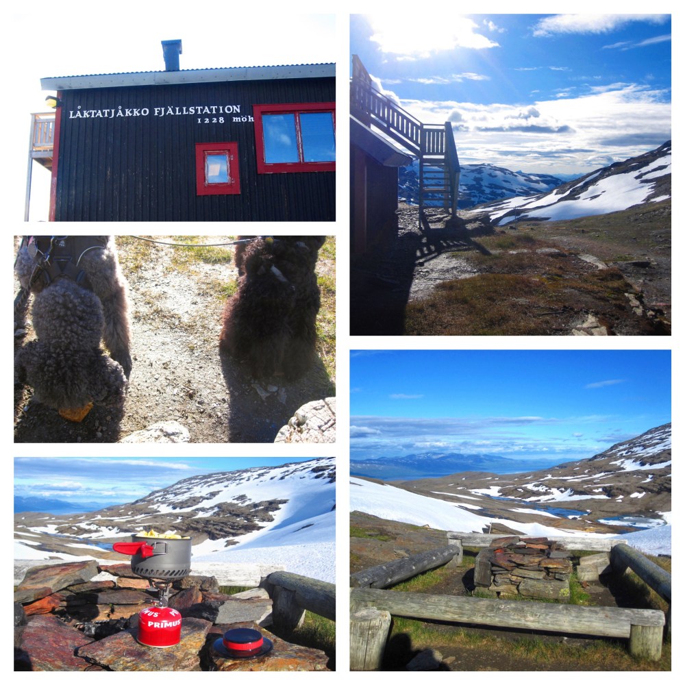We walked over more snow fields, but eventually we caught sight of a lodge. In front of us, between summits and surrounded by snow was Låktatjåkko Mountain Station. A welcomed sight, and it was with a certain degree of happiness and pride that the dogs and I walked the last few hundred meters to the mountain lodge.