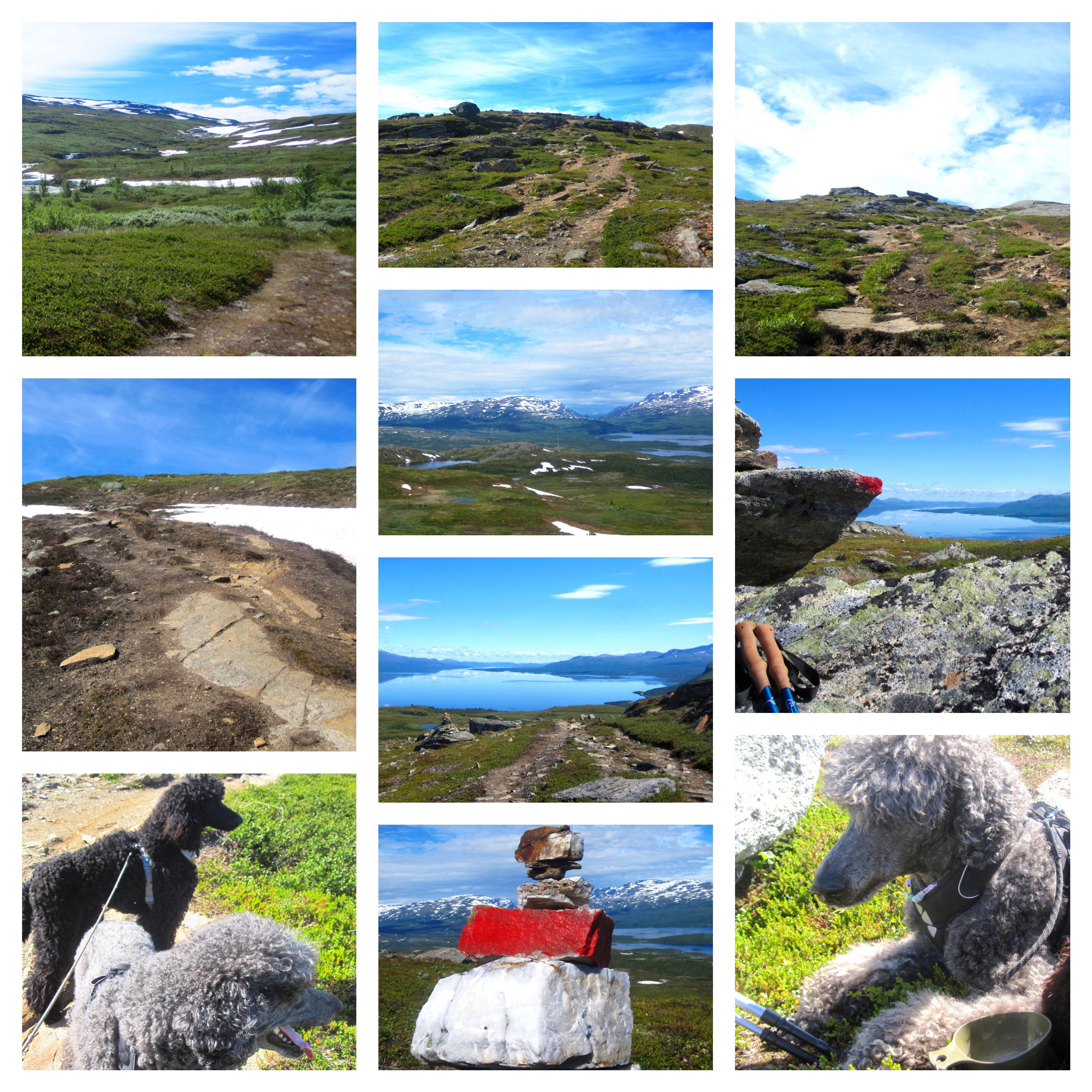 På vägen upp till ledens utgångspunkt passerade vi golfbanan, och där blev vi stoppade av en man. Han undrade om jag och hundarna verkligen skulle upp och gå på fjället, och om det är någonting som pudlar verkligen klarar av. Jag måste erkänna att jag blev lite ställd av denna fråga, men svarade till slut något om att pudlar visst kan gå i fjällen.