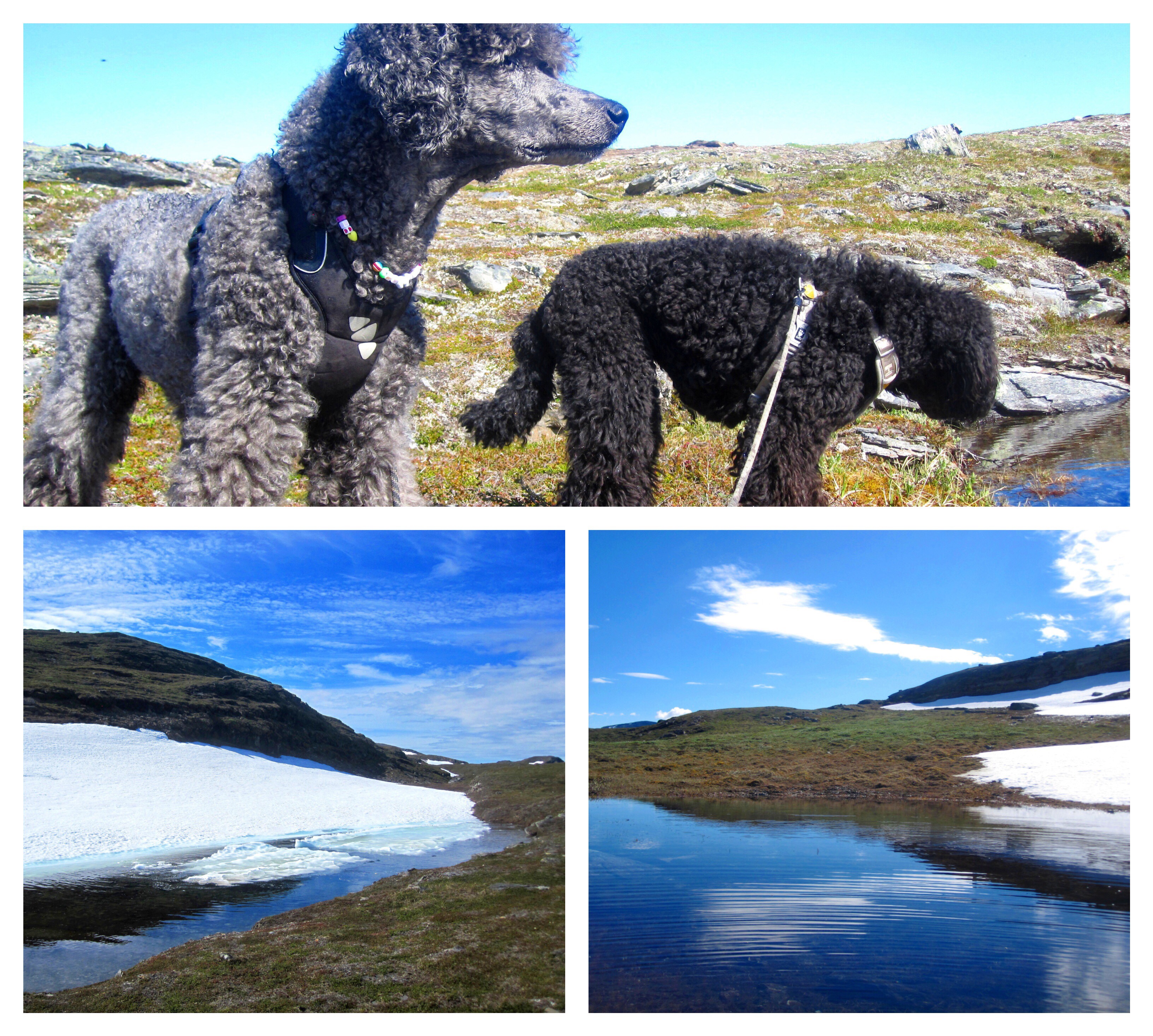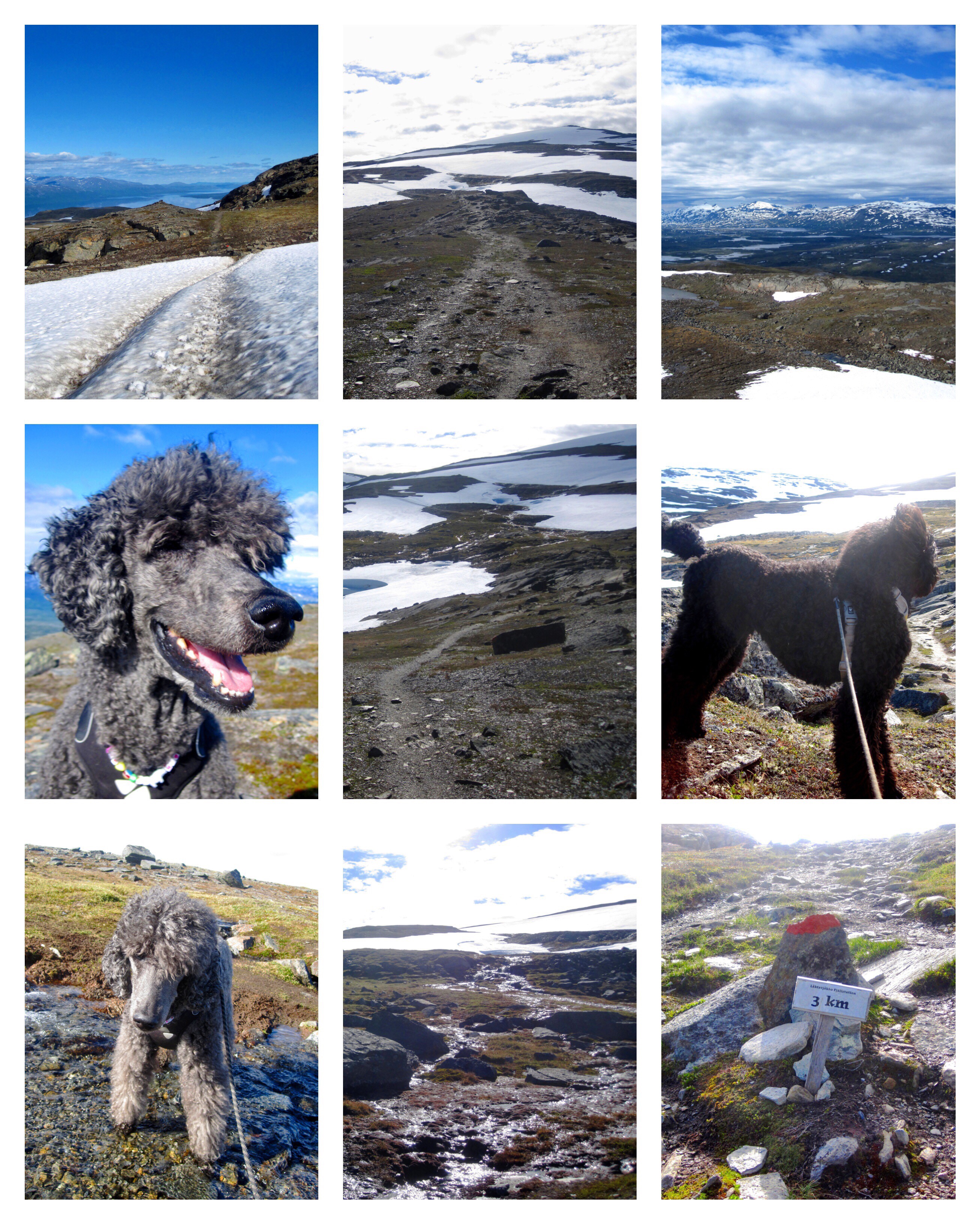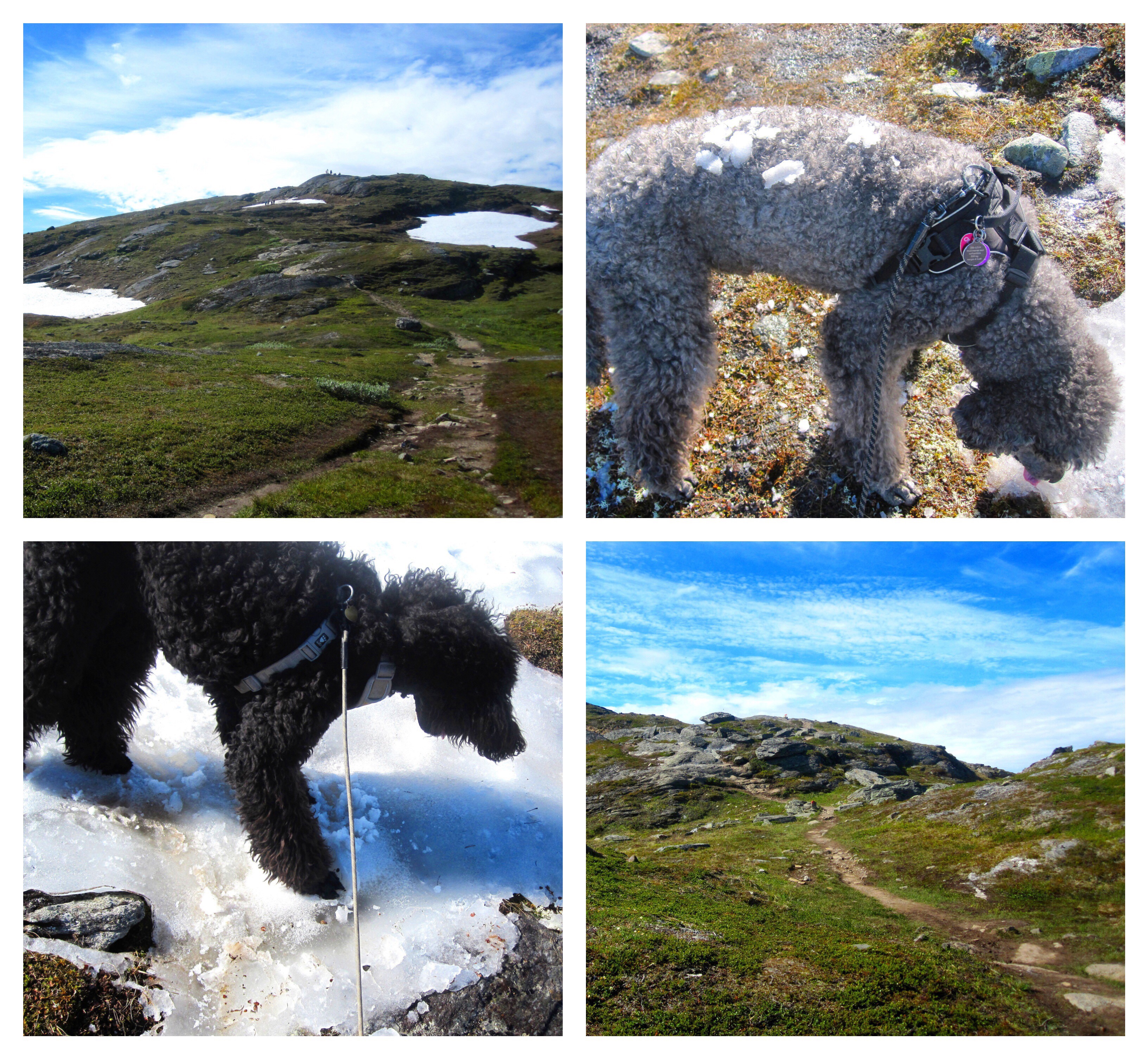 On our way to the starting point we walked past the golf course, and there we were stopped by a man. He asked if the dogs and I really were going to walk in the mountains, and if that really was something poodles can handle. I must admit I was a bit taken aback by his question, but I eventually said something about poodles being able to hike in the mountains.