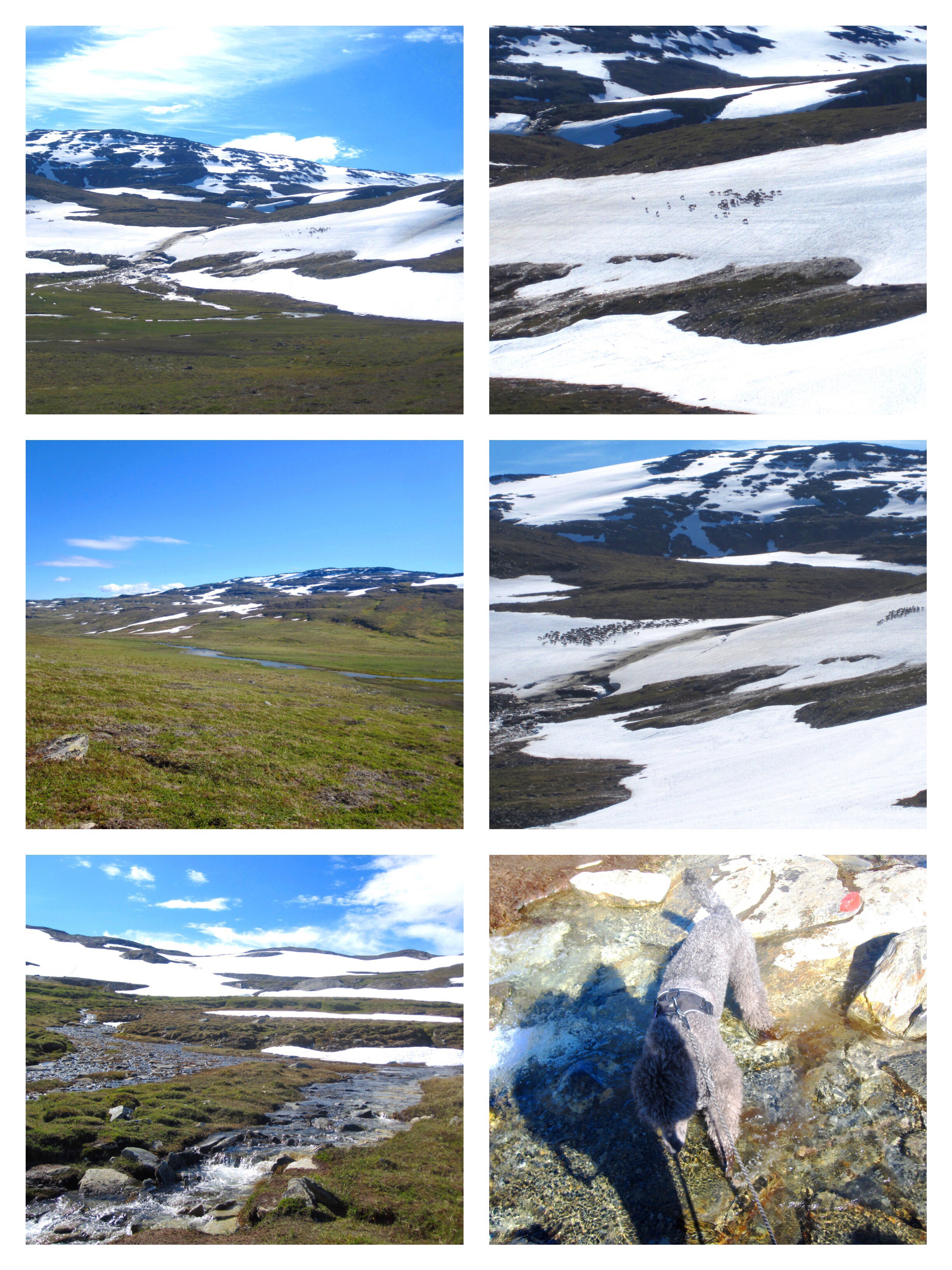 On a snow field far away I suddenly saw a herd of reindeer. This is the first time I saw reindeer up in the mountains, something that I happily and excitedly told Oliver and Charlie. They didn’t really care much, they didn’t notice the reindeer at that distance and were busy navigating their way past stones, mud and streams.