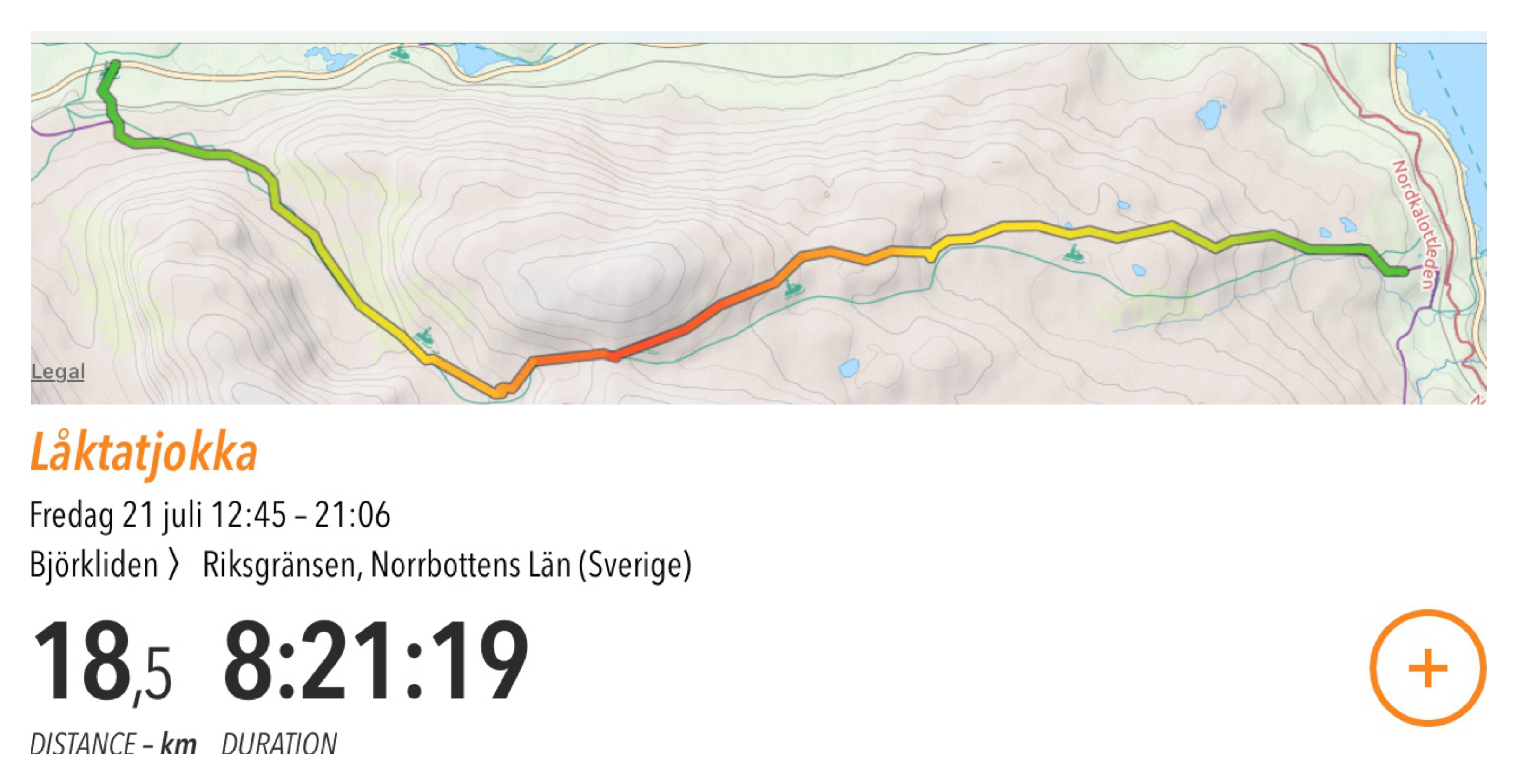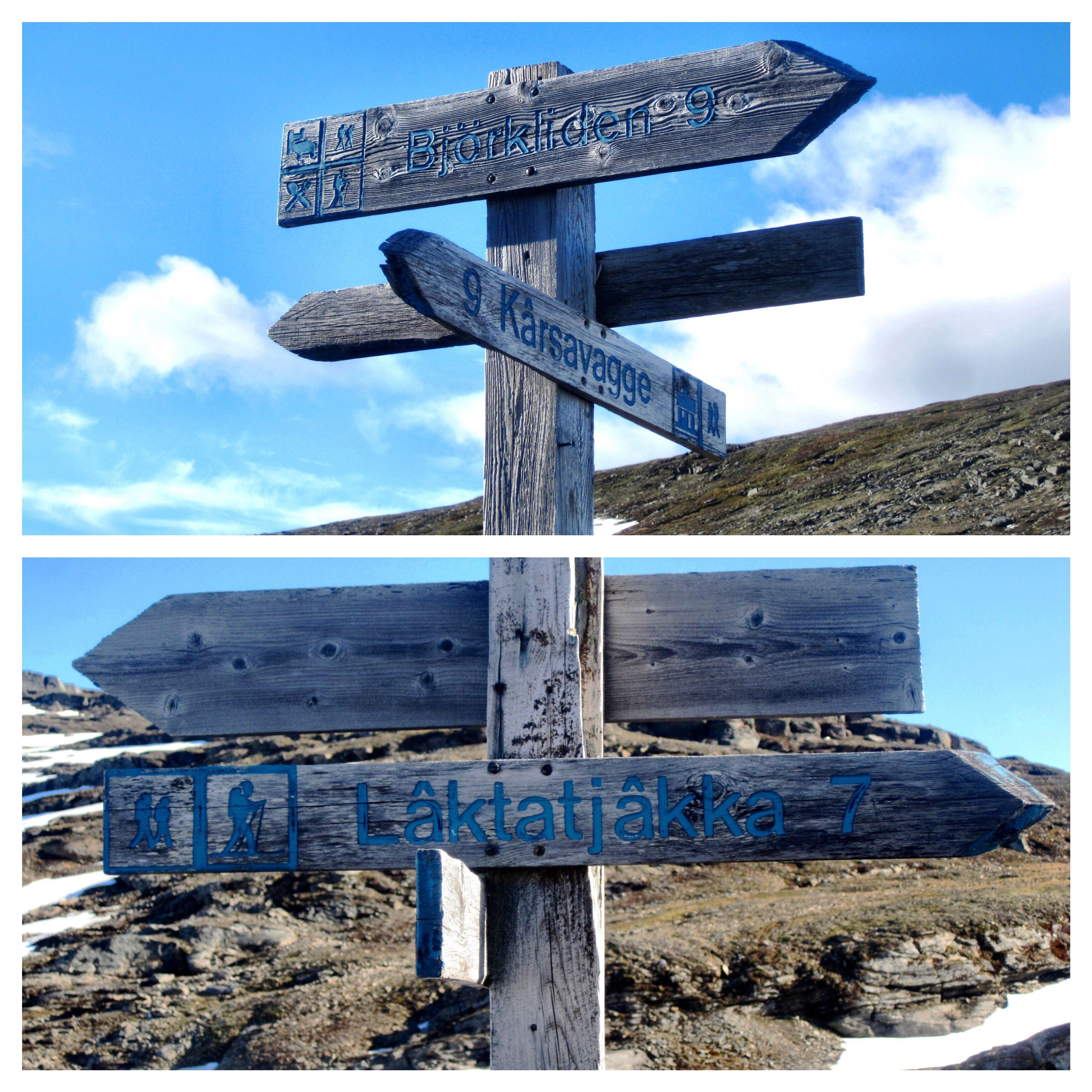 Det var vid slutet av vår vandring dagen innan som till större delen gick längs Rallarvägen som jag uppmärksammade skyltningen mot Låktatjåkko fjällstation och sett vandrare försvinna bort över fjällen. Min nyfikenhet väcktes direkt.