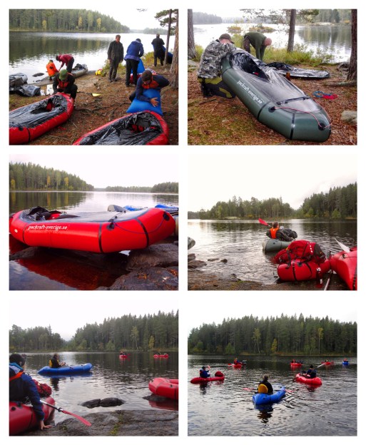 Det såg verkligen enkelt och praktiskt ut när deltagarna blåste upp sina packrafts och gjorde sig redo för dagens tur, där de skulle få testa på att både paddla och vandra med packraft. Det var en häftig syn när tio packrafts la ut och paddlade iväg bort i fjärran.
