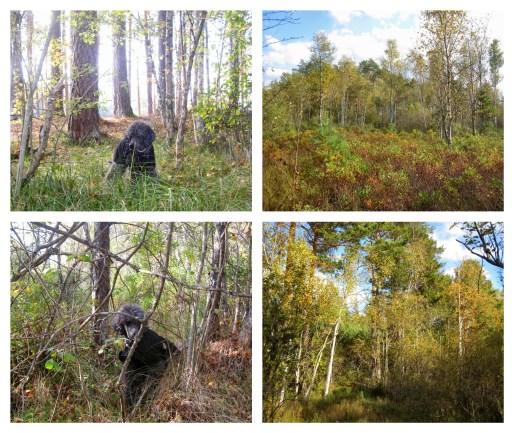 In the early afternoon I felt like taking the dogs for a walk. There were no trails in connection to the shelter, but I found a barely visible path to follow. Oliver was at first a bit sceptical to head off out into the terrain, but Charlie happily followed.