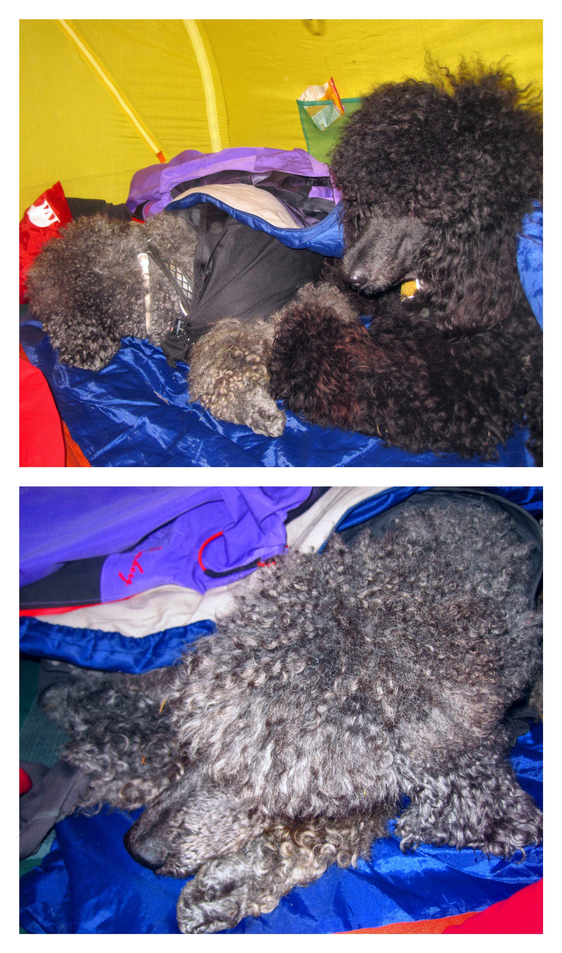 The rest of the evening continued without drama, and we were up late talking before it was time to go to bed. That night Okiver did not mind being tucked in, and both he and Charlie curled up together in the sleeping bag.