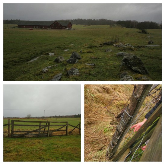 Vi närmade oss en bondgård, och precis innan ladugården tog vi oss ut ur hagen genom en grind låst med tvinnad ståltråd som vi kämpade med ett tag innan min vän lyckades få upp den. När vi senare slängde ett öga på kartan insåg vi att vi gått lite fel i hagen, och jag tror att det finns en annan enklare grind.