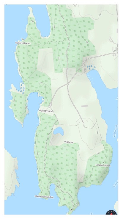 The decision fell upon the Viggeby trail because the distance was about 10 kilometres long, about the same as our long walks, and it was a trail we had not hiked before. There was also supposed to be a shelter with firewood on the trail. The Viggeby trail is located outside Linköping on the peninsula Viggeby, close to the small community Brokind. We drove there, along route 34/23 to Brokind Gård and from there to Viggeby boatclub. There are several parking lots connected to the trail, and we chose to park on the East parking lot. It is possible to take the bus to Brokind Gård or Brokind vägkors from Linköping, and then walk the rest of the way.