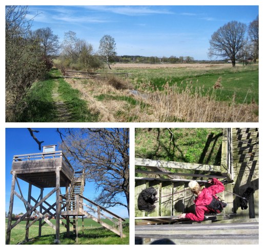 We could not remain in the tower for the rest of the day, so eventually we packed everything up and headed out to the bird hide. To get there you have to walk across a bridge and then follow a long footbridge leading over wetland with lots of birch trees. It is beautiful to walk there and it feels a bit strange to get to experience a place like that so close to a town in the southeast of Sweden.