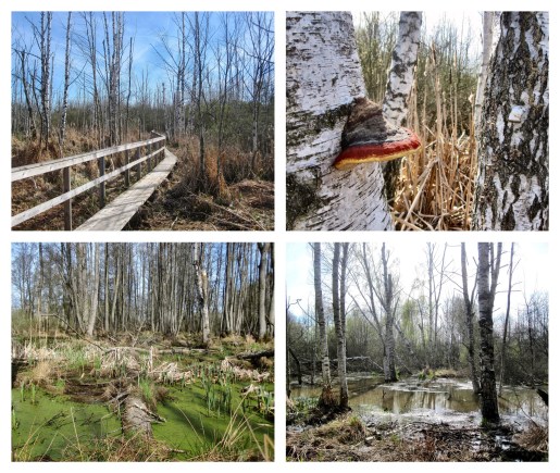 Men i fågeltornet kunde vi inte bli sittandes hela dagen, så till slut packade vi ihop våra grejer och fortsatte ut till gömslet. För att komma dit ut måste man gå över en bro och sedan följa en lång spång som leder igenom en våtmark med massa björkar. Det är en väldigt vacker sträcka och det känns väldigt märkligt att få uppleva en sådan plats så nära en stad i sydöstra Sverige.