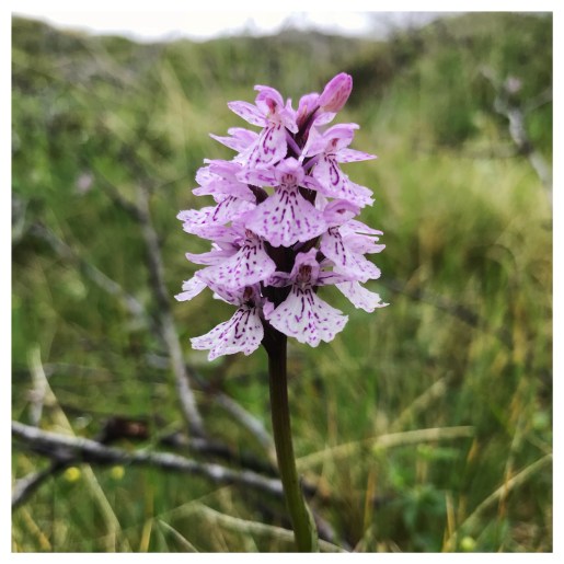 When we continued I discovered a small purple flower growing close the ground. It turned out to be the moorland spotted orchid. It was quite awesome to have found this little flower, and once I had found one I saw them growing everywhere. I was very happy to have discovered it.