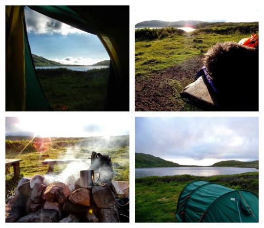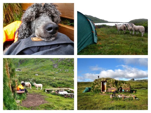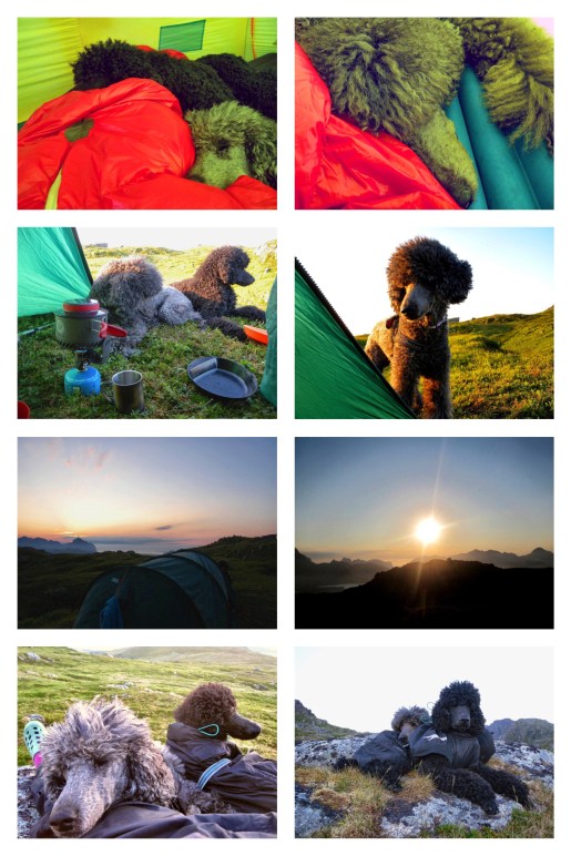 While I pitched the tent a ewe with two lambs walked straight past the tent and the dogs. Charlie thought it was very exciting and wanted to rush towards the animals, luckily I was holding onto his leash, while Oliver glared at them when they passed him. He had laid down to sleep on one of the benches and was not happy to have been woken up.