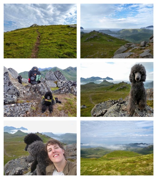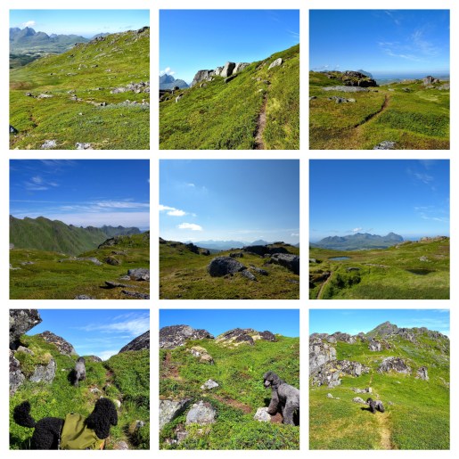 But the feeling when I reached Kartstaven’s summit with the dogs was intoxicating. It came so close to me not being able to share this experience with Oliver but here we were, the three of us together. We sat down to rest, and I decided to enjoy lunch up there on the summit. While we ate yet another family showed up, but they just took a family photo before heading down again.