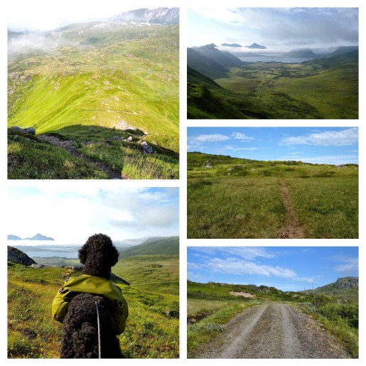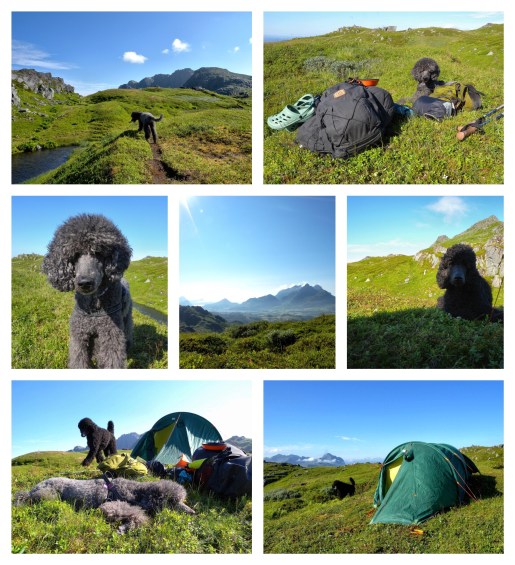 The dogs and I were given a ride to the radio mast at Hagskaret, and from there we began our hike. It was the same path that we had walked last year when we climbed Justadtinden, but the trail does split further ahead. When we began our ascend from Hagskaret we met a couple of people that were on their way down. It felt exciting to be walking there again, in the place where the idea to return with my tent for a longer hike was born. We were now, the dream coming true.