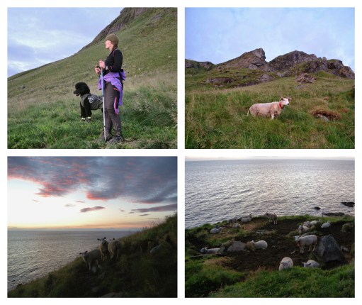 Leden fortsatte att gå upp och nerför fjällväggen, och vi fick ta oss förbi fler steniga och branta partier. Ibland var det svårt att urskilja vad som var stigen vi skulle följa, och vad som var fårstigar. Vi lyckades hamna på en fårstig som ledde rakt ut till ett stup, och min väninnan var övertygad om att fåren stod och skrattade åt oss.