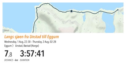 Vi hade planerat för en tältnatt på Eggum, men jag och väninnan bestämde oss för att gå dit från Unstad tillsammans med Charlie medan min moster och Oliver tog bilen med packning ut till Eggum. Ingen av dem kunde på grund av hälsoskäl följa med på vandringen. Oliver hade nyligen varit hos veterinären och fått stränga order om vila sedan han fått en hosta som visade sig bero på kronisk bronkit.