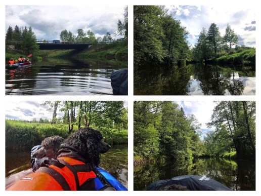 Emellanåt fick de däremot till det, men fort gick det i vart fall inte. Det behöver å andra sidan inte alltid göra det heller. Det var väldigt avkopplande att flyta runt där på ån och gosa med hundarna. Ibland satte sig Charlie i mitt knä och ibland la Oliver upp huvudet på mitt ben för att bli klappad.