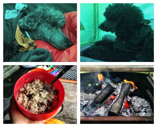 In the morning we woke up to heavy rain fall, and I remained in the tent with the dogs for a while until it began to ease up. We were quite organised that morning, but we did take the time to enjoy a small campfire.