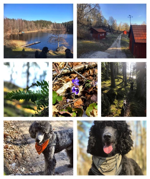 It was a lovely afternoon; the sun was shining and all the dogs were happy to run freely in the forest. I write all the dogs because my friend had brought her two dogs alongas well. From Graversfors you are immediately faced with a steep upslope leading into the forest, but once you have climbed this you reach a rather wide and flat path.