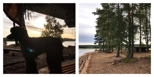 We continued through old clear fellings and the forest, and when we reached the lake Nätsjön we decided to take a break at the shelter. There we met two other hikers busy making a fire, and so we sat down and talked while we refueled. Charlie had a bit to eat as well, and afterwards he laid down to rest.
