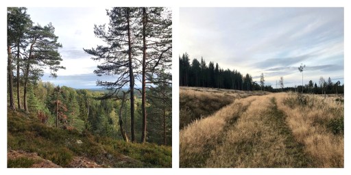 It was now early evening, and we continued down a clear felling only to soon have to climb another steep upslope. The lactic acid burned in our legs, but we made it up with more than a few well-chosen swear words. We reached a viweing point, Dammshöjden, where we stopped to catch hour breath for a moment before we continued.