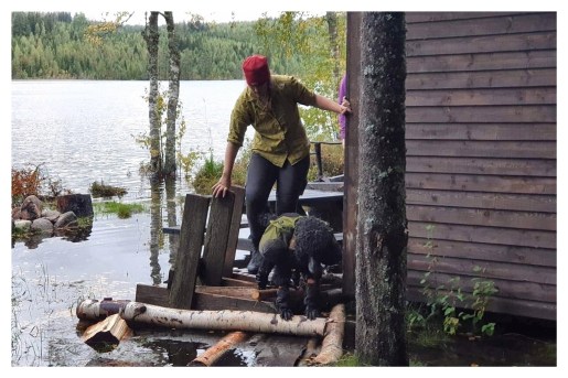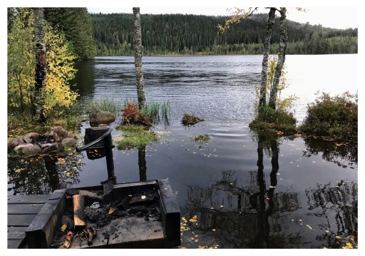 På morgonen kände jag mig nästan som vanligt igen, om än sliten. I solljuset blev det tydligt hur omfattande översvämningen vid vindskyddet var. Sjön som vindskyddet ligger vid ska vara belägen 15-20 meter ifrån vindskyddet enligt mitt vandringssällskap som gått Silverleden ett flertal gånger tidigare. Det var i vart fall nära att hämta vatten.