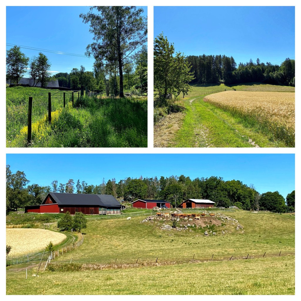 When we continued it was on gravel roads, through forest on paths and on roads for forest machines. We climbed a mountain and were treated to an amazing view, and the surrounding forest was beautiful. But shortly after we once again stood in front of a pasture, but we were able to avoid crossing it by following a gravel road. Even though my feet were hurting quite a lot from walking on all these roads crossing the pasture was not an option when it was possible to avoid it.