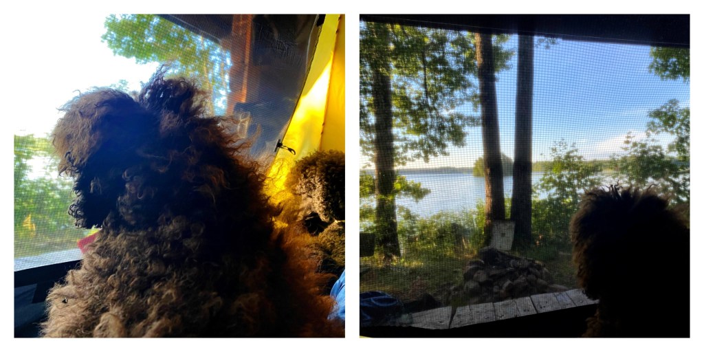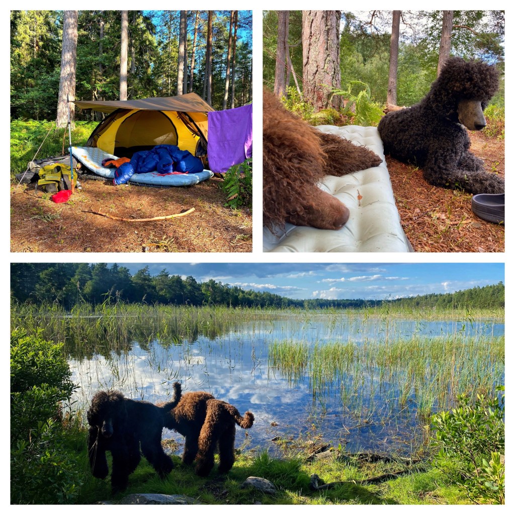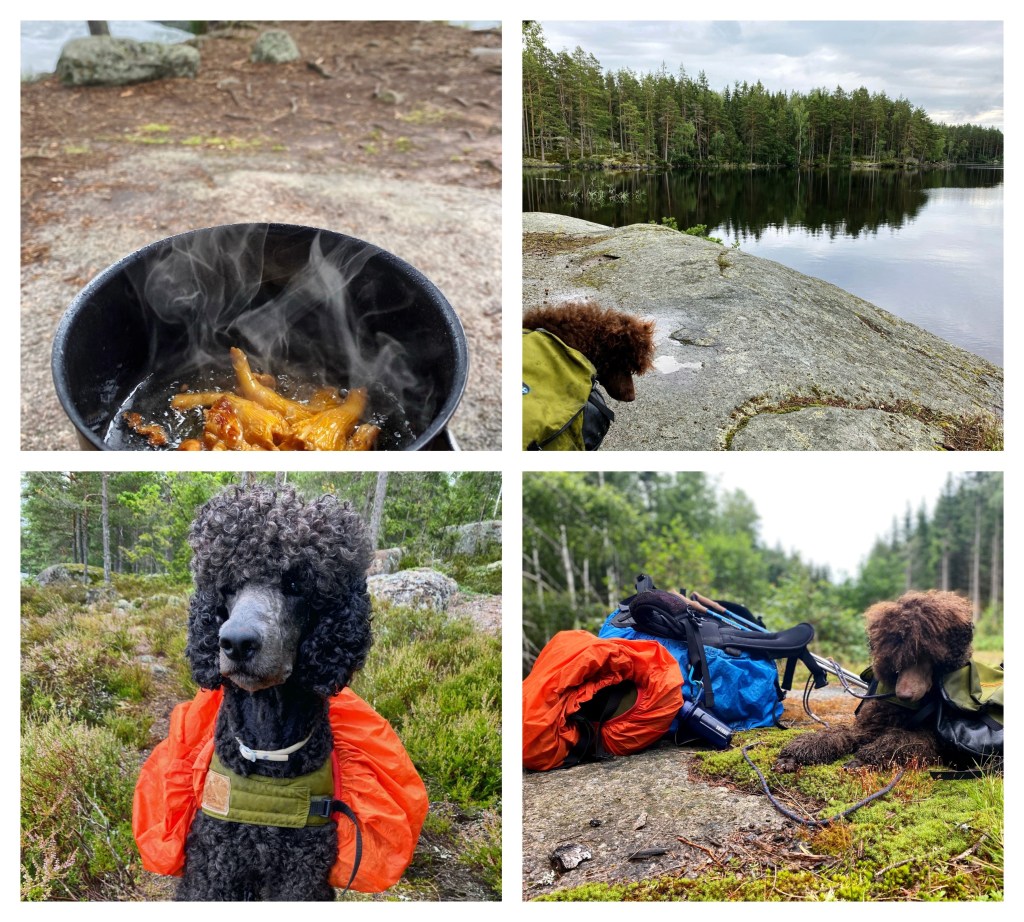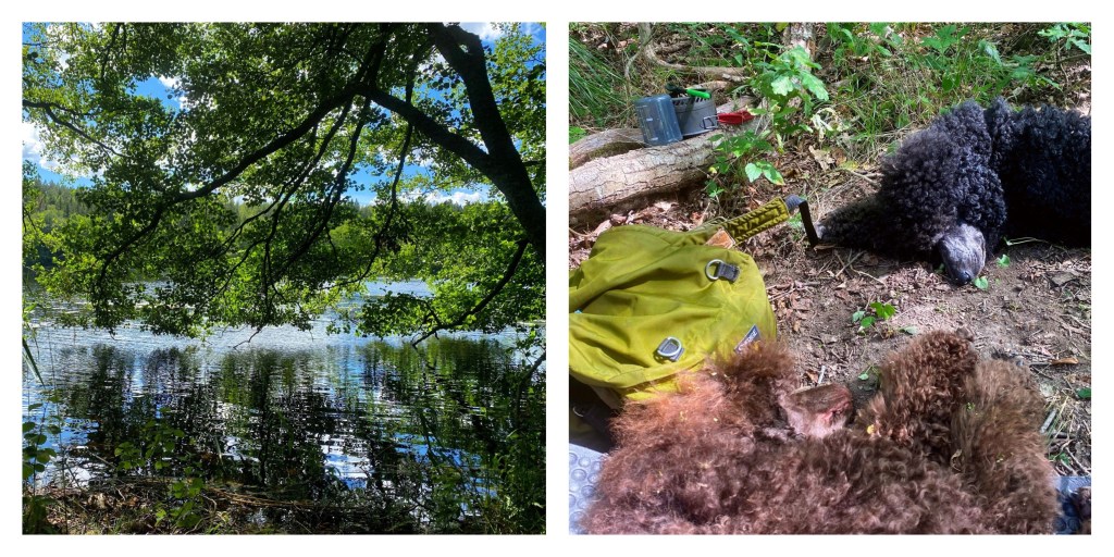 In other words we had a short hike to the shelter that was beautifully located by the lake Mösjön. I picthed my tent close to the shelter and put the tarp up as sun protection. I put my sleeping pad under the tarp and laid down to cuddle with the dogs. It was Tycho’s 1st birthday, and I had packed some extra tasty treats to spoil the dogs with on that day.