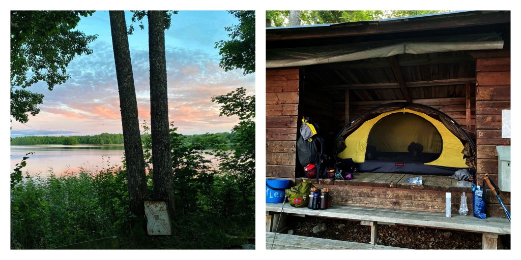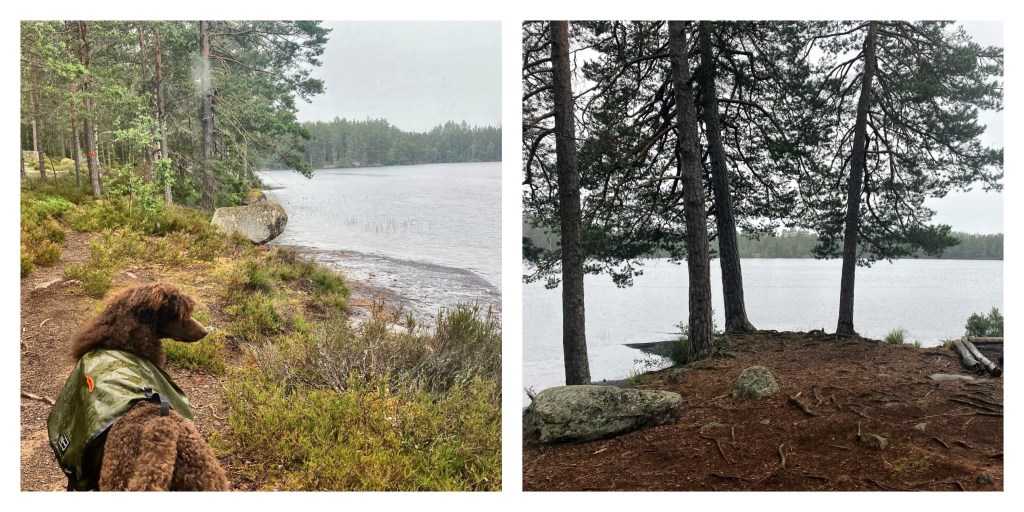 I was woken up early in the morning by Tycho barking at a large bird flying over the lake. He had been barking several times during the night, and I wondered if the bird lived in a nearby tree and if the bird and its eventual partner were what Tycho had been guarding us all from. In the end it did not matter, we were all awake and so I decided to get the day started. The aim that day was to reach a cottage close to the trail beloning to outdoor friends. They had offered me to stay in the cabin for a night or two, and it was a very tempting offer I decided to take.