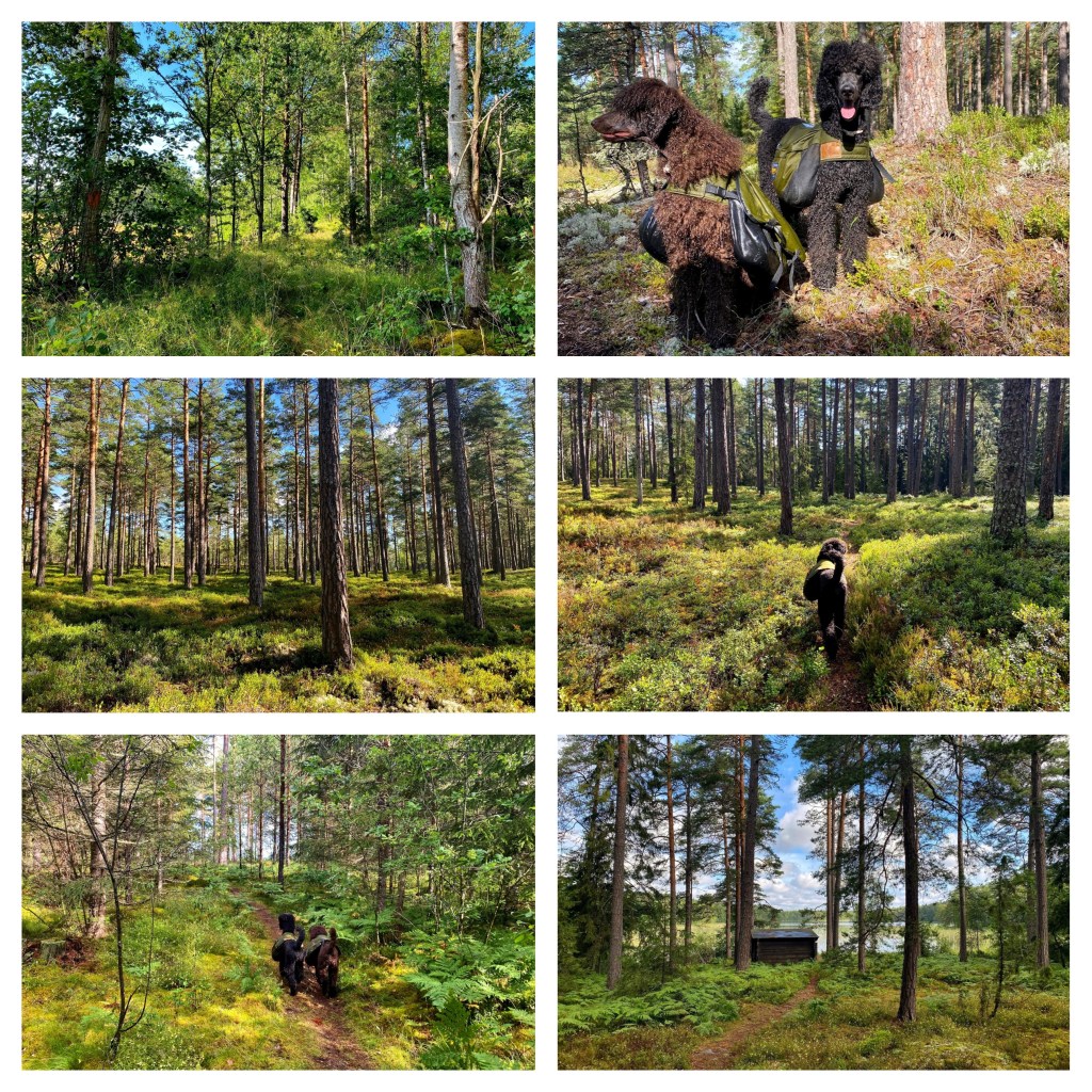 Och till min förvåning så gick vi genom mycket skog. Vi korsade en hage i början, men sedan var det mycket skog. Jag provade att låta Tycho gå lös för att träna lite på det, och till min överraskning så hade någonting hänt sedan vi vandrade sist. Han var väldigt uppmärksam på mig, lyhörd och höll koll på mig hela tiden. Det gjorde att jag vågade ha honom lös längre sträckor, och han höll sig hela tiden nära mig. Det kändes väldigt skönt, för jag hade länge trott att Tycho skulle bli en hund som var svår att ha lös.