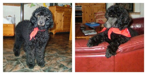 He choose me. He was everything a puppy shouldn’t be. Insecure and afraid he didn’t even dare to say hello to me or my father when we visited him and the breeder. I was not even sure I wanted a poodle, I actually had my eyes set on a sighthound. He was a three month old bouncing ball with fur, and it was obvious why he was the only remaining puppy in his litter. When we arrived to the breeder and he saw us, he promptly ran the other way. Still the four of us eneded up in the kitchen; me, my dad, the breeder and the puppy. I remember sitting there thinking I needed to figure out how to excuse us and get out of there, to signal dad I was not interested in a puppy who would not even dare to come over and say hello when the breeder placed him on his back in my lap. He had struggled in the arms of his breeder, but when he was placed in my lap he went very still, stared up at me and began licking my face. Shortly after we made the down payment and settled a date for when we would come back and collect him.